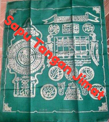 Sapu tangan Rajah tulisan Arab seperti pada gambar diatas, bukanlah tulisan tangan melainkan sablonan dan di jual secara perlusin atau kodian. Kemudian oleh paranormal, dukun dan sejenisnya, Sapu Tangan ini di Asmak sesuai kebutuhan dan jadilah ia Jimat Sapu Tangan Al Karomah dengan fungsi sesuai yang Anda inginkan.